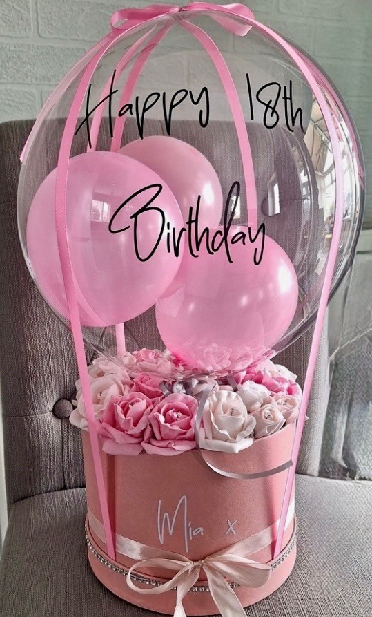 Hot Air Rose Balloon Bouquet (Purple) Elevate your gifting game with our Hot Air Rose Balloon Bouquet in purple. This stunning arrangement includes: 2 dozen fresh roses in your choice of color, A whimsical hot air balloon design. Perfect for Valentine’s Day or any celebration in Antelope Valley.